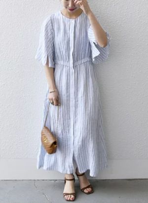 SHIPS any:(シップスエニィ)オーガニック リネン フレアスリーブ ワンピース
