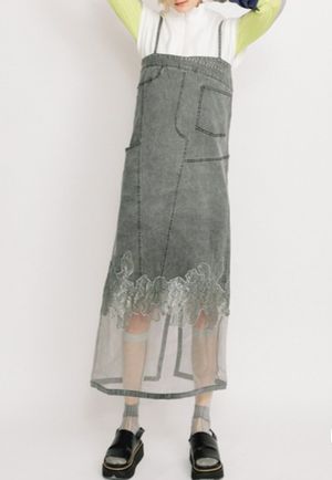 レースコンビネーションデニムジャンパースカート