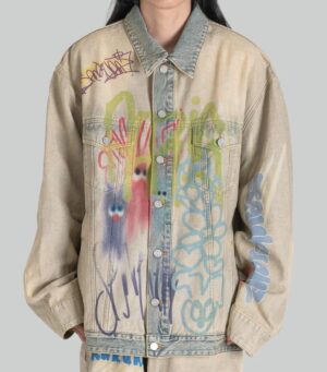 香港滞在中に佐藤健さんが着ているカラフルなスプレーペイントのプルオーバー